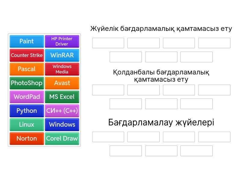 Тапсырма 1. Ұсынылған бағдарламаларды үш санатқа жіктеңіз.