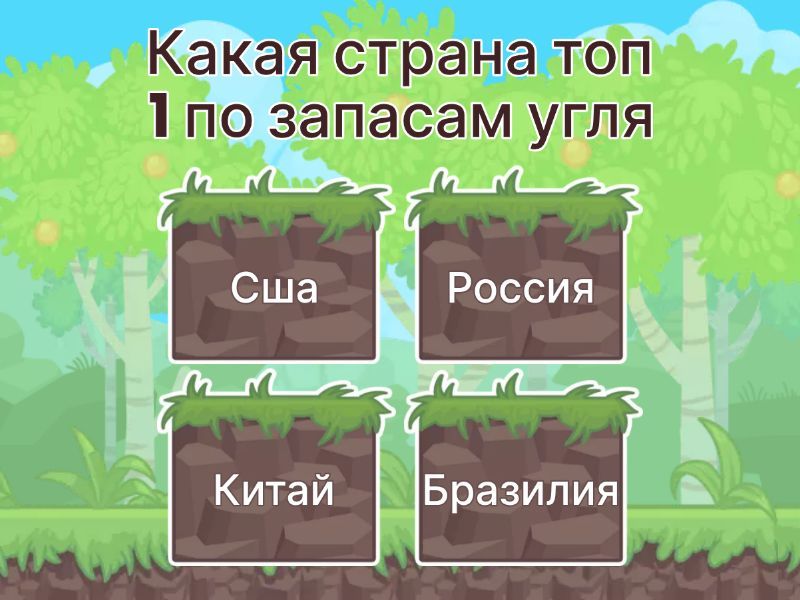 1) Какая страна топ 1 по запасам угля a) Сша b) Россия c) Китай d) Бразилия  2) Какая страна занимает 3 место по добыче нефти a) Саудовская Аравия b) Канада c) Венесуэла d) Россия 3) Какая страна занимает 1 место по добыче природного газа a) Катар b) Ирак c) Иран d) Россия 4) Какая страна является топ 2 по добыче железной руды a) Австралия b) Украина  c) Бразилия d) Казахстан 5) Какие страны лидируют по запасам урана a) Австралия b) Мексика c) Италия d) Казахстан e) Канада f) Китай  6) Какие страны занимают топ 3 по добыче урана a) Казахстан b) Канада c) Австралия d) Катар e) Иран f) Россия  7) Какая страна занимает 2 место по количеству вспаханных земель  a) Норвегия b) Франция c) Австралия  d) Казахстан 8) Какая страна занимает 3 место по количеству лесных ресурсов  a) Филиппины b) Канада c) Россия d) Габон 9) Какая страна занимает 1 место по количеству пресной воды a) Д.Р.Конго b) Египет c) Япония d) Канада  10) В какой области добывают нефть и Газ в Казахстане a) ЗКО b) Алматинская c) Абайская d) Улытауская