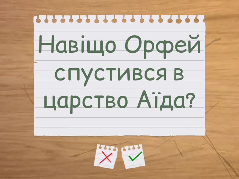 Найдавнішими вважають міфи про ... - походження тварин і рослин, Що таке міф? - Давні оповіді про виникнення світу і створення людини, про діяння богів та героїв, Сукупність міфів називають ... - Міфологією, Міф про Прометея був створений у ... - Давній Греції, Хто допомагав прикувати Прометея? - Сила, Влада, Гефест, Хто визволив Прометея? - Геракл, Скільки подвигів здійснив Геракл? - 12, На честь кого хлопчика назвала Гераклом? - Гери, Кому служив Геракл? - Еврісфею, Як Гераклу вдалось вичистити Авгієві стайні? - За допомогою води, Жуль Верн народився у ... - Франції, Жанр твору "П'ятнадцятирічний капітан" - Пригодницький роман, Навіщо Орфей спустився в царство Аїда? - Аби повернути Еврідіку , Як Орфей зміг переконати Аїда віддати Еврідіку? - Розчулив своїм співом, Хто покарав Нарциса? - Афродіта, Зі скількох частин складається роман Жуль Верна? - Двох,