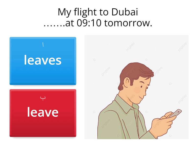 1) My flight to Dubai …….at 09:10 tomorrow. a) leaves b) leave 2) Earth…… the sun a) orbit b) orbits 3) He……football every day a) Plays b) Play 4) I usually…..at home a) eat b) eats