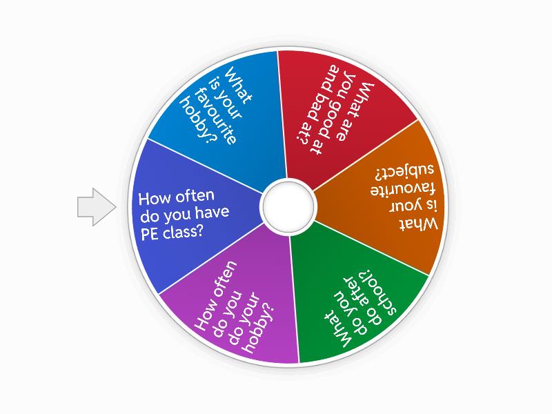 1) What is your favourite hobby? 2) What are you good at and bad at? 3) What is your favourite subject? 4) What do you do after school? 5) How often do you do your hobby? 6) How often do you have PE class?