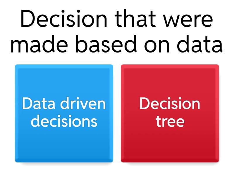1) Decision that were made based on data a) Data driven decisions b) Decision tree 2) Sensor a) Device that detect changes in the environment b) A flowchart that helps you make decisions. 3) Decision tree a) Device that detect changes in the environment b) A flowchart that helps you make decisions.