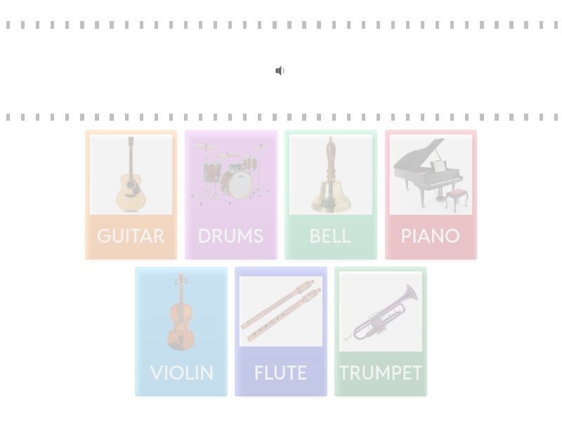 VIOLIN, PIANO, GUITAR, TRUMPET, DRUMS, FLUTE, BELL,