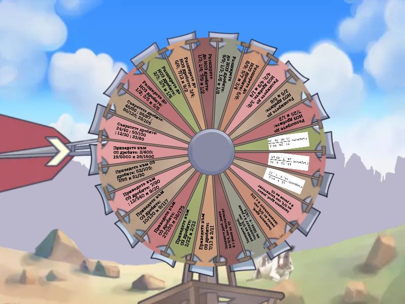 1) Съкратете дробите: 24/40 ; 50/100 ; 12/30 ; 33/60 2) Съкратете дробите: 48/60 ; 58/87 ; 80/120; 35/105 3) Разширете до НОЗ дробите: 1/2; 3/5 и 5/8 4) Разширете до НОЗ дробите: 2/3; 2/5 и 1/6 5) Разширете до НОЗ дробите: 3/4; 5/6; 7/12 и 9/2 6) Разширете до НОЗ дробите: 1/3; 1/4; 7/9 и 1/2 7) Разширете до НОЗ дробите: 5/9; 1/3; 1/6 и 1/8 8) Разширете до НОЗ дробите: 5/6; 8/9; 5/7 и 3/4 9) Разширете до НОЗ дробите: 3/8; 4/3; 4/9 и 1/4 10) Разширете до НОЗ дробите: 2/5 и 5/8 11) Разширете до НОЗ дробите: 7/25 и 1/2 12) Запишете дроб, равна на 9/4, ако числителят й е равен на 45 13) Запишете дроб, равна на 9/4, ако знаменателят й е 104 14) Запишете дроб, равна на 9/4, ако числителят й е равен на: 5844 : 4 - 1434 15) Запишете дроб, равна на 9/4, ако числителят й е равен на 45 16) Приведете към ОЗ дробите: 7/13 и 2/11 17) Приведете към ОЗ дробите: 3/22 и 2/33 18) Приведете към ОЗ дробите: 37/105 и 38/175 19) Приведете към ОЗ дробите: 10/130 и 9/117 20) Приведете към ОЗ дробите: 7/60 ; 13/540 и 9/20 21) Приведете към ОЗ дробите: 52/105; 7/95 и 61/30 22) Приведете към ОЗ дробите: 3/400; 19/6000 и 29/1500