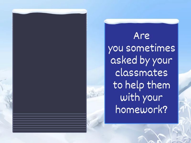 What was the best event you were invited once?, Are you sometimes asked by your classmates to help them with your homework?, How do you react when you're asked questions you don't want to answer?, How do you feel when you're corrected while speaking English?, What should be done to reduce the amount of stray cats and dogs in the streets?, What gadgets are bought by most people every year?, Have you ever been panished for something you didn't do?, Why are plants usually watered daily?, What was the last present you were given this year?, How is New Year usually celebrated in your family?.