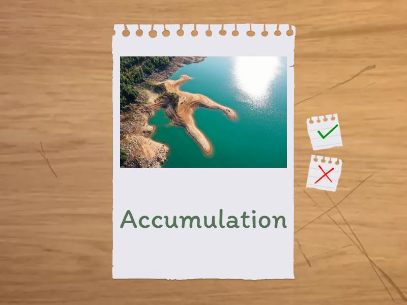 Evaporation - The process of turning liquid water into vapour, Transpiration - The release of water vapour from plants into the air., Condensation - The process of water vapour cooling and turning back into liquid, forming clouds., Precipitation - Water falling from clouds as rain, snow, sleet, or hail., Accumulation - The gathering of water on the ground in rivers, lakes, and oceans.,