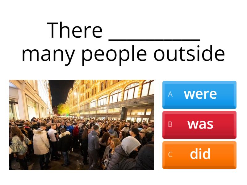 1) __________ you enjoy the festival last night? a) Was b) Did c) Were 2) This tea __________ quite disgusting. a) was b) did c) were 3) __________ they at the party last night? a) Was b) Did c) Were 4) The restaurant __________ crowded when we arrived. a) was b) did c) were 5) I __________ understand the instructions. a) wasn't b) didn't c) weren't 6) We __________ take a tent. a) wasn't b) didn't c) weren't 7) __________ you laugh at me? a) Was b) Did c) Were 8) What __________ they do when they arrived? a) was b) did c) were 9) __________ play area next to the camping area? a) Was b) Did c) Were 10) There __________ many people outside a) was b) did c) were 11) They __________ happy with their new apartment. a) was b) did c) were 12) __________ you have a day out last week? How __________ it? a) Was, did b) Did, was c) Were, was 13) They __________ agree with you. a) wasn't b) didn't c) weren't 14) The students __________ excited about the trip. a) was b) did c) were 15) Why __________they get married? a) was b) did c) were