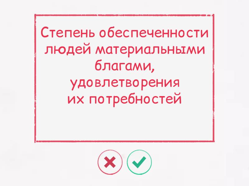 Способ организации деятельности людей по созданию жизненных благ, необходимых для удовлетворения потребностей - ЭКОНОМИКА, Наука, которая исследует, как используются имеющиеся ограниченные ресурсы для удовлетворения неограниченных потребностей - ЭКОНОМИКА, Ввел понятие «Экономика» в труде «Домострой» - Ксенофонт, Рассматривает экономические вопросы в масштабах страны - МАКРОЭКОНОМИКА, Рассматривает экономические вопросы одной экономической единицы, сферы - МИКРОЭКОНОМИКА, Все, что способно удовлетворять потребности людей, приносить людям пользу, доставлять удовольствие - Блага, Экономическое благо, произведённое не для собственного потребления, а для обмена - Товар, Целенаправленное полезное действие, которое потребляется в процессе его осуществления - Услуга, Все виды природных и человеческих возможностей, которыми располагает общество и которые используются для создания экономических благ с целью удовлетворения человеческих потребностей - ЭКОНОМИЧЕСКИЕ РЕСУРСЫ, Часть экономических ресурсов, которая непосредственно вовлекается в процесс производства или используется в качестве его условий - ФАКТОР ПРОИЗВОДСТВА, Система отношений между экономическими субъектами в процессе производства, распределения, обмена и потребления экономических благ - ЭКОНОМИЧЕСКАЯ СИСТЕМА, Признанные обществом отношения между людьми, возникающие в связи с распределением и присвоением экономических благ - СОБСТВЕННОСТЬ, Перевод частной собственности (путем безвозмездного отчуждения или через выкуп) в государственную - Национализация, Передача объектов государственной собственности (в результате продажи или безвозмездно) в частную собственность - Приватизация, Любое поступление денежных средств или получение материальных благ - ДОХОД, Степень обеспеченности людей материальными благами, удовлетворения их потребностей - УРОВЕНЬ ЖИЗНИ, Сформулировал в 1850-е гг. экономический закон, согласно которому чем ниже доходы человека, тем большую часть дохода (в %) он тратит на питание. - Эрнст Энгель (1821—1896), Стоимость минимального набора материальных благ и услуг, которые необходимы для обеспечения жизнедеятельности человека и сохранения его здоровья. Учитывает также обязательные платежи и взносы - Бюджет прожиточного минимума ,