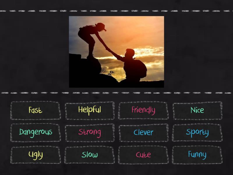 Helpful, Cute, Slow, Clever, Fast, Friendly, Nice, Funny, Ugly, Strong, Dangerous, Sporty,