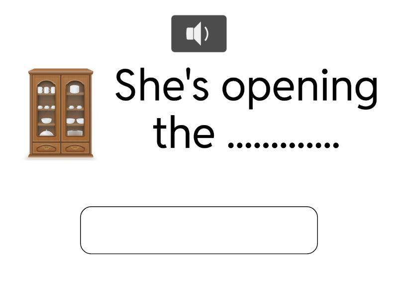 He's painting the picture of the ........., She's opening the ............., He's holding the big box of .........., She's standing ............... the door., She's ................to the teacher..