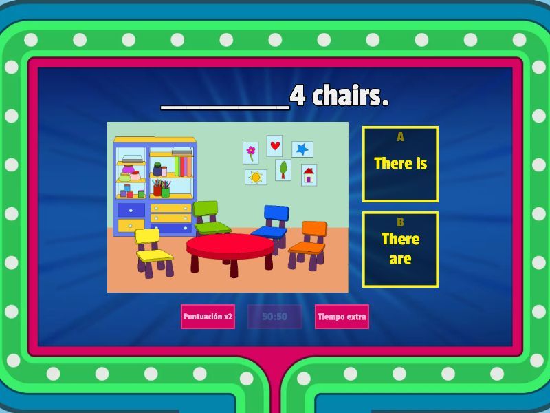 1) __________4 chairs. a) There is b) There are 2) __________a computer. a) There is b) There are 3) __________ a chair. a) There is b) There are 4) __________ a red table. a) There is b) There are 5) ___________ 2 beds. a) There is b) There are 6) _________ 4 clouds. a) There is b) There are 7) __________a big lion. a) There is b) There are 8) ____________3 rabbits. a) There is b) There are 9) _____________2 crayons. a) There is b) There are 10) _______________2 pencils. a) There is b) There are
