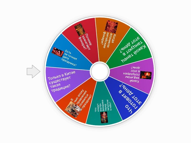 1) Есть ли точная дата праздника? a) b) 2) Почему зажигают фонари? a) В знак уважения к Будде b) В знак уважения к Кришне c) Нет света у людей d) В знак уважения к Богу 3) Когда возникли китайские фонари? a) 100 лет назад b) более 4060 лет назад c) более 1800 лет назад d) более 1000 лет назад 4) Какой танец танцуют в этот день? a) b) c) 5) Какой вид игры популярен в этот день? a) Прятки b) Загадки c) Догонялки 6) Что готовят в этот день? a) b) c) 7) Что кладут внутрь фонарика перед запуском в небо? a) еду b) знак от сглаза c) записку с желанием 8) В чью эпоху правления появился праздник? a) Мань b) Хань c) Лань d) Тань 9) Только в Китае существует такая традиция? a) b)