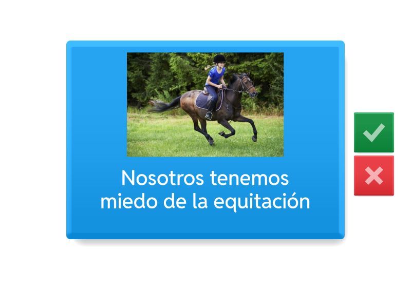 Yo tengo miedo de las calles estrechas, Yo tengo miedo de las ratas blancas, Yo tengo miedo de los ratones pequeñitos, Tú tienes miedo de los ladrónes, Tú tienes miedo de los aviones, Ella tiene miedo de la gente de África, Usted no tiene miedo de las monas, Nosotros tenemos miedo de la equitación, Nosotros tenemos miedo de ayudar a la policía, Vosotros tenéis miedo de viajar a Venezuela, Vosotros tenéis miedo de abrir una empresa en España, Ellos tienen miedo de tener los problemas con el dueño del piso, Ellos tienen miedo de practicar las artes marciales,