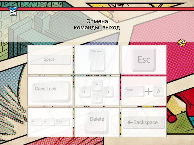 Отмена команды, выход, Переводит курсор на следующую строку, Пробел, Удалить символ слева, Удалить символ справа, Перемещать курсор, Прописные буквы, Изменить действия других клавиш, Заглавная буква,