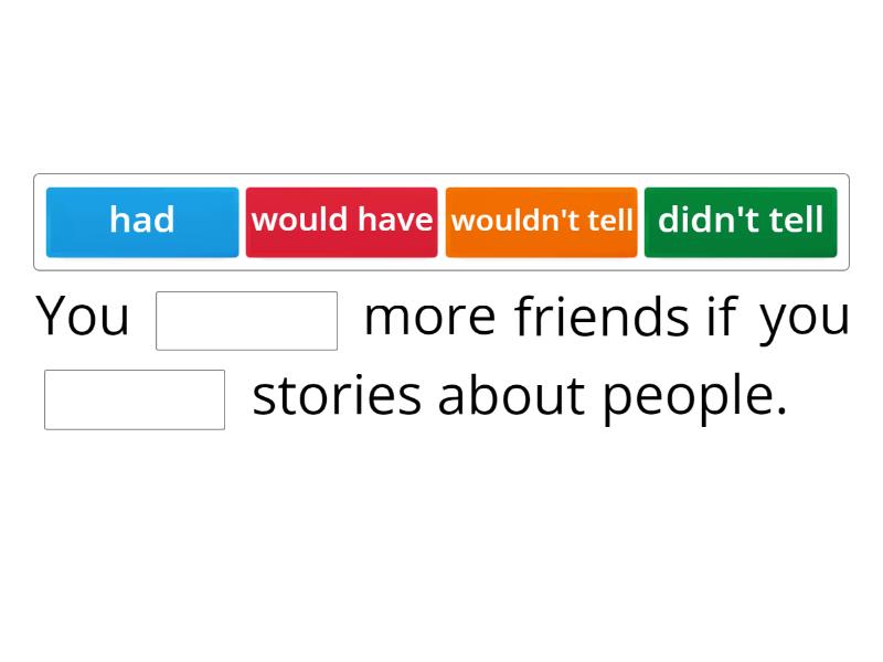 You ____ more friends if you ____ stories about people. If I ____ you, I ____ a warm coat today, but I guess it's up to you. If Kirsty ____ in France, she ____ French quickly. My parents ____ angry with us if we ____ something very bad. If we all ____ as much as you, there ____ any food in the fridge! If you ____ a little money every week, you ____ enough to buy new boots quite soon.