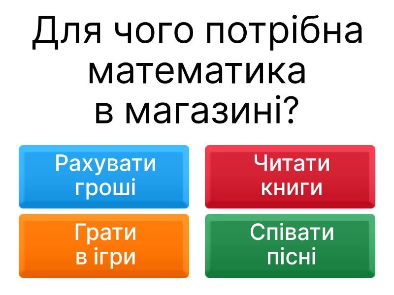 1) Для чого потрібна математика в магазині? a) Рахувати гроші b) Читати книги c) Грати в ігри d) Співати пісні 2) Як математика допомагає в кулінарії? a) Вимірювати інгредієнти b) Малювати картини c) Писати листи d) Слухати музику 3) Чому важливо знати математику в будівництві? a) Розраховувати розміри b) Співати пісні c) Читати вірші d) Грати на гітарі 4) Як математика допомагає в подорожах? a) Планувати маршрут b) Готувати їжу c) Малювати картини d) Співати пісні 5) Для чого потрібна математика в спорті? a) Рахувати очки b) Читати книги c) Грати на піаніно d) Співати пісні 6) Як математика допомагає в медицині? a) Дозувати ліки b) Писати вірші c) Грати в шахи d) Слухати музику 7) Чому важливо знати математику в фінансах? a) Планувати бюджет b) Читати вірші c) Грати на гітарі d) Співати пісні 8) Як математика допомагає в науці? a) Аналізувати дані b) Малювати картини c) Писати листи d) Грати на піаніно 9) Для чого потрібна математика в архітектурі? a) Проектувати будівлі b) Читати книги c) Грати в шахи d) Співати пісні 10) Як математика допомагає в програмуванні? a) Створювати алгоритми b) Писати вірші c) Грати на гітарі d) Слухати музику