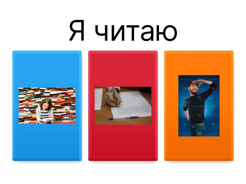 1) Я читаю a) b) c) 2) Я пишу a) b) c) 3) Я смотрю a) b) c)