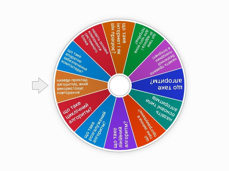 1) що таке апаратне забезпечення комп'ютера? 2) назвіть основні компоненти системного блока 3) що таке інтернет і як він працює? 4) що таке ІР-адреса і для чого вона потрібна? 5) назвіть правила безпечної поведінки в інтернеті 6) що таке алгоритм? 7) назвіть основні типи алгоритмів 8) що таке змінна в програмуванні? 9) що таке лінійний алгоритм? 10) що таке розгалужений алгоритм? 11) що таке циклічний алгоритм? 12) наведи приклад алгоритму, який використовує повторення