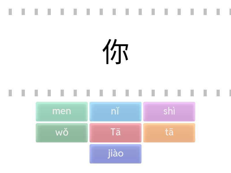 nǐ - 你 , Tā - 他 , tā - 她, wǒ - 我, shì - 是, jiào - 叫, men - 们,