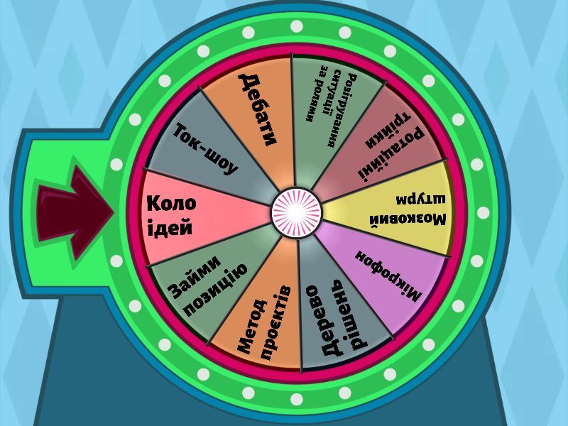 1) Ток-шоу 2) Дебати 3) Розігрування ситуації за ролями  4) Ротаційні трійки 5) Мозковий штурм 6) Мікрофон 7) Дерево рішень 8) Метод проєктів 9) Займи позицію 10) Коло ідей
