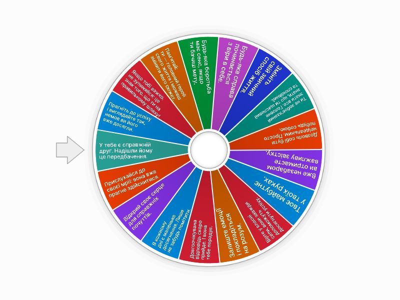 1) Прагніть до успіху і виглядайте так, немов ви його вже досягли. 2) Якщо тобі важко, не зупиняйся: це знак того, що ти на правильному шляху! 3) Пам’ятай: ти — головний герой свого життя і можеш змінити його сюжет. 4) Будь-яка боротьба має сенс, якщо ти бачиш мету. 5) Будь-яка справа починається з віри в себе. 6) Змініть свій звичний спосіб життя. 7) Ти не зобов’язаний знати все. Головне знати, що ти щасливий та спокійний. 8) Дозволь собі бути неідеальним. Просто побудь собою. 9) Вже незабаром ви отримаєте важливу звістку. 10) Твоє майбутнє у твоїх руках. 11) Вірте у власні сили, вони завжди допоможуть досягнути успіху. 12) Залиште емоції і покладіться на розум. 13) Довгоочікувана відповідь скоро прийде. І вона тебе порадує. 14) В кожному дні є маленьке досягнення. Лише не забудь помітити. 15) Відкрий своє серце для справжніх почуттів. 16) Прислухайся до своєї мрії: вона вже прагне здійснитися. 17) У тебе є справжній друг. Надішли йому це передбачення.