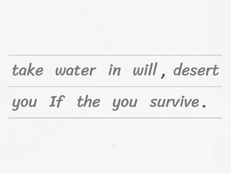 If you take water, you will survive in the desert. , Your room will look tidier if you keep your clothes in the wardrobe., If you help your mom, she will be very happy., If you don't do your homework, your teacher will be sad. , If you do a good job, you will get a good mark., If it doesn't rain, we will go outside. , If you go to bed late, you will be tired. ,