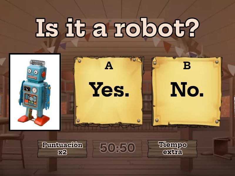 1) Is it a robot? a) Yes. b) No. 2) Is it a train? a) Yes. b) No. 3) Is it a book? a) Yes. b) No. 4) Is it a teddy bear? a) Yes. b) No. 5) Is it a doll? a) Yes. b) No. 6) Is it a car? a) Yes b) No