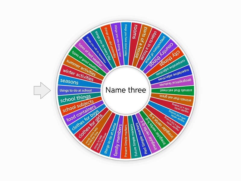 seasons, winter activities, summer activities, types of good weather, types of bad weather, things you will do tomorrow, things you do every day , things you did yesterday , things you are doing now, things you have done today, rooms, parts of a house, objects in a house, prepositions of place, country things, city things, comparative adjectives, superlative adjectives, geographical features , animals that eat meat, animals that eat grass , regular verbs with a [t] ending, regular verbs with a [d] ending, regular verbs with a [id] ending, irregular verbs a-g, irregular verbs h-p, irregular verbs q-z, Past Simple markers, Future Simple markers, Present Simple markers, family members, things to do at home, things to help around the house, words which help to tell the time, clothes for girls, clothes for boys, food containers, school subjects, school things, things to do at school.