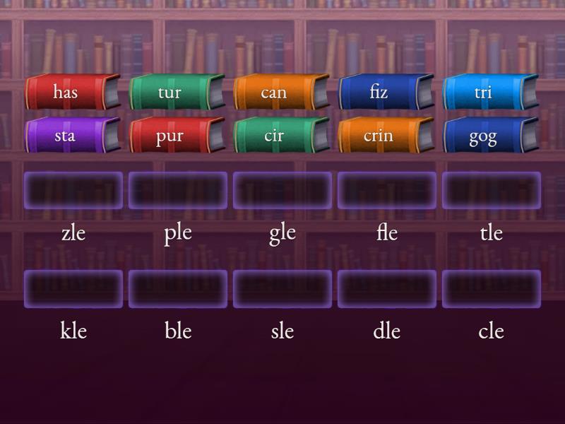 tri - fle, has - sle, crin - kle, can - dle, sta - ble, cir - cle, gog - gle, pur - ple, tur - tle, fiz - zle,