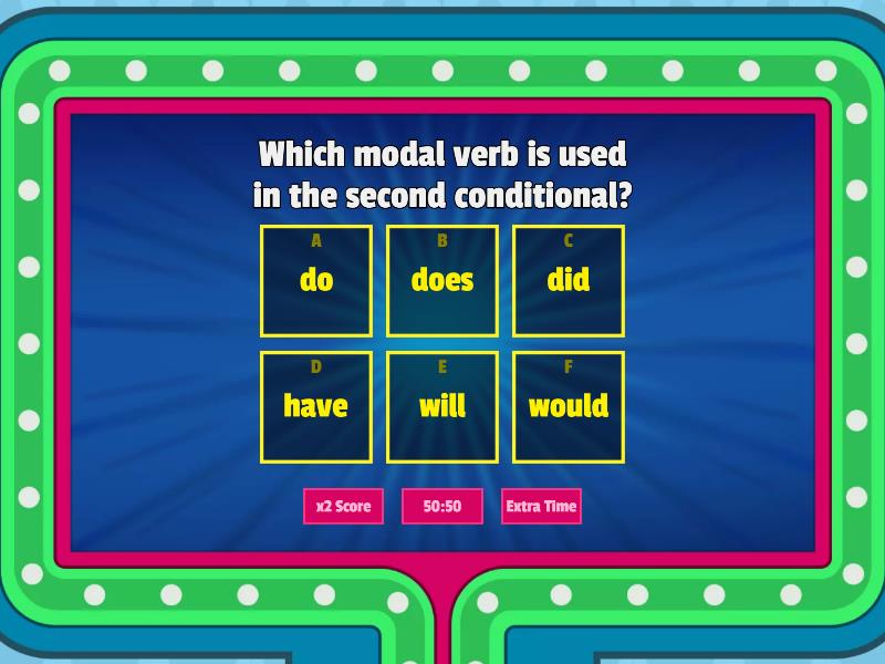 1) Which modal verb is used in the second conditional? a) do b) does c) did d) have e) will f) would 2) Which tense comes after "if" ? a) present b) past simple c) past continuous d) present perfect e) be going to f) future 3) Which form of to be is used in the second conditional? a) being b) been c) be d) was e) were 4) We use the second conditional to ... a) talk about unreal situations in the present and future b) talk about imaginary situations in the past c) report what someone said d) talk about hypothetical situation in the present past and future 5) "would" can be replaced by ... a) could, might or may b) might, will, did c) will, did, ought to d) may, ought to, able 6) If I would have more money, I'd be happier. a) Correct b) Incorrect 7) If my friends have an argument, I would try to solve the problem. a) Correct b) Incorrect 8) He'd be all right, a) if he had more money. b) if she got what she wanted. c) if they had more money. 9) If I ___ him, I'd get a job. a) am b) were c) are 10) He ____ stay if he had a job. a) was b) were c) could