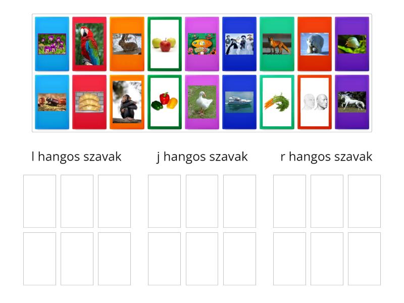 l hangos szavak: , , , , , , j hangos szavak: , , , , , , r hangos szavak: , , , , , ,