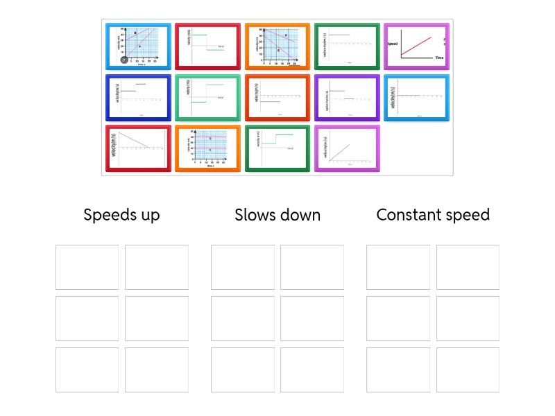Speeds up: , , , , , , Slows down: , , , , Constant speed: , , , ,