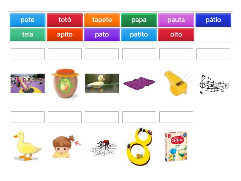 patito, papa, apito, totó, tapete, teia, oito, pauta, pato, pote, pátio,