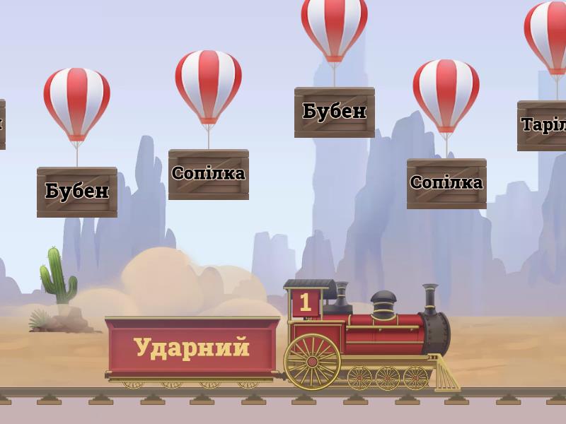 Сопілка - Духовий, Бандура - Струнний, Литаври - Ударний, Сурма - Духовий, Бубен - Ударний, Цимбали - Струнний, Скрипка - Струнний, Трембіта - Духовий, Тарілки - Ударний,