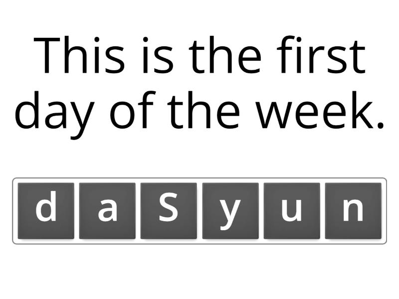 Sunday - This is the first day of the week., Monday - This is the second day of the week., Tuesday - This is the third day of the week., Wednesday - This is the fourth day of the week., Thursday - This is the fifth day of the week., Friday - This is the sixth day of the week., Saturday - This is the seventh day of the week., week - Sunday, Monday, Tuesday, Wednesday, Thursday, Friday, and Saturday, weekend - Saturday and Sunday, morning - When do you wake up?, evening - Another word for night., night - When do you go to sleep?, afternoon - When do you eat lunch?, day - You go to school during the ___., weekday - Monday, Tuesday, Wednesday, Thursday, and Friday., midnight - 12am - you should be asleep!,