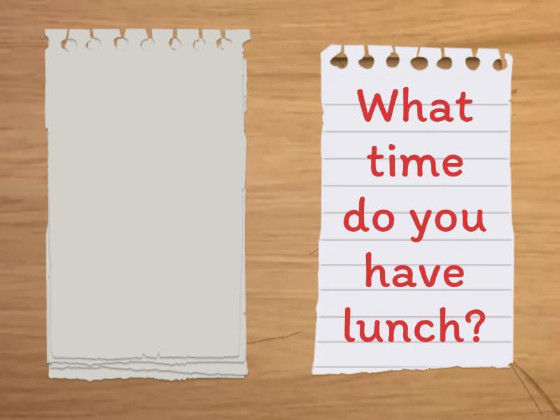 What time do you get up?, What time do you go to bed?, What time do you have lunch?, What time do you finish school?, What time do you go to bed?.