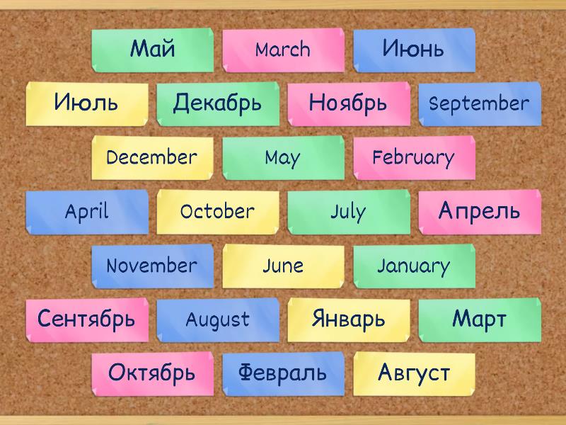 Январь, January, Февраль, February, Март, March, April , Апрель, Июль, July, Август, August, Сентябрь, September, Октябрь, October, Ноябрь, November, Декабрь, December, Май, May, Июнь, June,