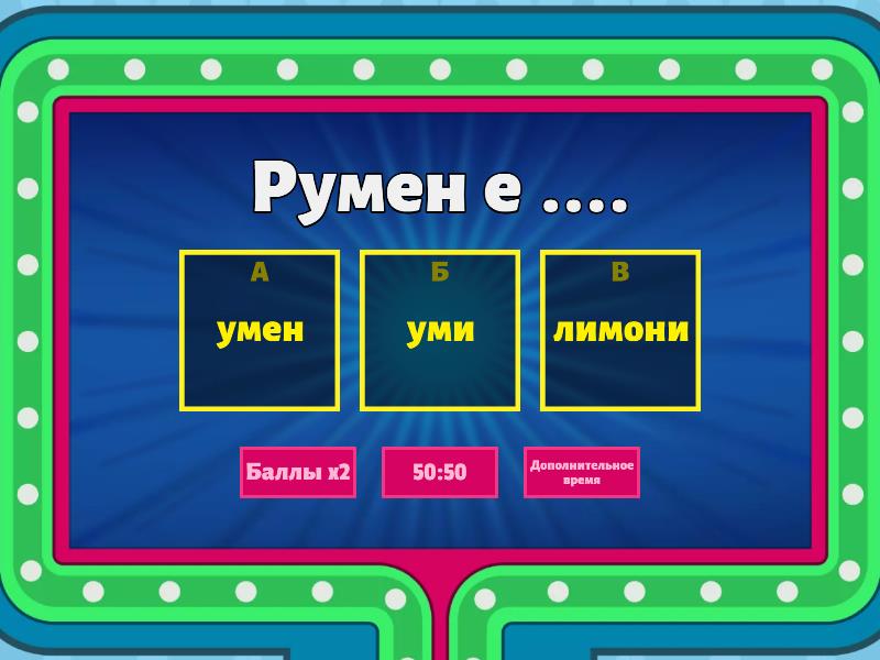 1) Румен е .... a) умен b) уми c) лимони 2) Мама уми...... a) умна b) мина c) Румена 3) Мина.... a) елен b) малина c) нар 4) Рони намери ранен a) орел b) марули c) море 5) Лори лае a) минерал b) елен c) луна