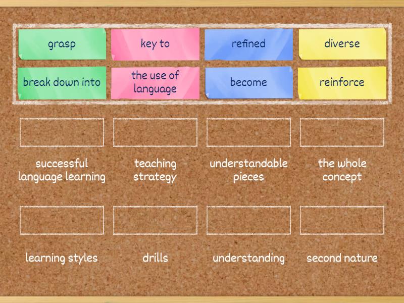refined - teaching strategy, break down into - understandable pieces, key to - successful language learning, the use of language - drills, reinforce - understanding, become - second nature, diverse - learning styles, grasp - the whole concept,