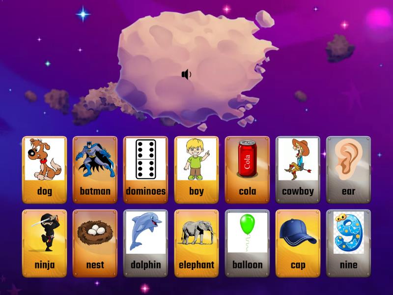 cap, cowboy, cola, boy, balloon, batman, ninja, nine, nest, dog, dolphin , dominoes , elephant , ear ,