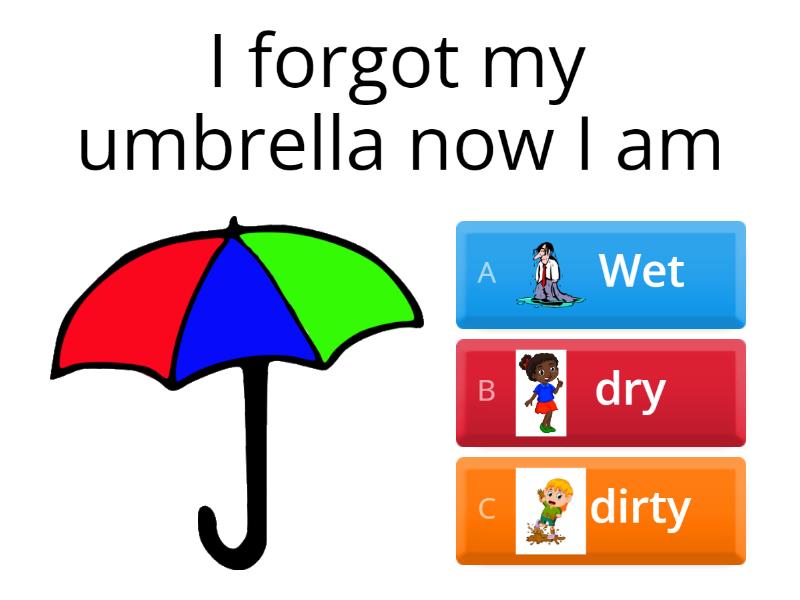1) I forgot my umbrella now I am a) Wet b) dry c) dirty 2) I am cold. What do I need. poooopppppppppppppppppppppppppppppppppppppppppppppppppppppppppppppppppppppppppppppppppp a) sweater b) shorts c) tank top 3) Ben said, "I want to see the tigers first". Where might Ben be? a) school b) zoo c) store 4) Mom said to Mya,"Do not forget your backpack." Where is Mya going? a) Carnival b) Beach c) School 5) Lennox went outside with an umbrella and a coat. What might be the weather be like? a) sunny b) rainy c) windy 6) The flower in the vase was starting to droop. Why do you think the flower was starting to droop? a) The flower hasn't been watered. b) The flower was made of plastic. c) The flower was growing. 7) Mom was making a bottle of milk for the baby. The baby was crying. Why do you think the baby is crying? a) The baby was hungry. b) The baby wants to play. c) The baby wants a bath. 8) WWHHATT a) what b) WHAAAAAAAAAAAAAAAAAAAAAAT 9) mnbgfrt a) ?????????? b) mnbhgtyu c) mjyuuu d) mnhbg 10) ooof a) oojh b) jn