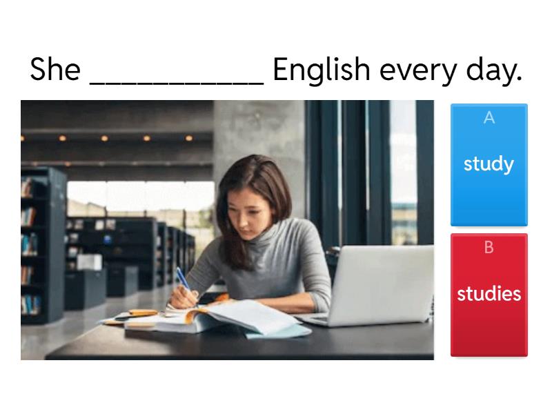 1) She ___________ English every day. a) study b) studies 2) I ___________ classical music. a) likes b) like 3) My sister _______ a student. She ___________ to school. a) is, goes b) to be, to go c) is, go 4) Michael always ___________ his homework on Saturday. a) do b) does 5) Jenny _________ a book before she ___________ to bed. a) read, go b) reads, goes 6) ___________ well? a) Does the girl sings b) Does the girl sing c) The girl sings 7) My friends ___________ to be doctors. a) wants b) want 8) My daughter ___________ at 7 o'clock in the morning. a) gets up b) get up 9) Our father ___________ work at 9 o'clock in the evening. a) finishes b) finish 10) Mark ___________my best friend. a) am b) is c) are 11) Her husband___________ breakfast at 6:00 am every morning. a) has b) have 12) Lisa ___________ extra time because she ___________ very organized. a) doesn't needs / is b) doesn't need / is 13) My children always ___________ dinner for me. They ___________ very nice. a) make / are b) makes / is 14) Policemen ___________ at universities, they work at police stations. a) doesn't work b) don't work 15) I ___________ to the gym, I ___________ at home. a) don't go / exercise b) doesn't go / exercises 16) ___________ a cup of coffee? a) You want b) Do you want c) Does you want 17) Anna ___________ housework during the week. a) doesn't b) doesn't do c) don't do 18) ___________ in China? a) Does your parents live b) Your parents live c) Do your parents live