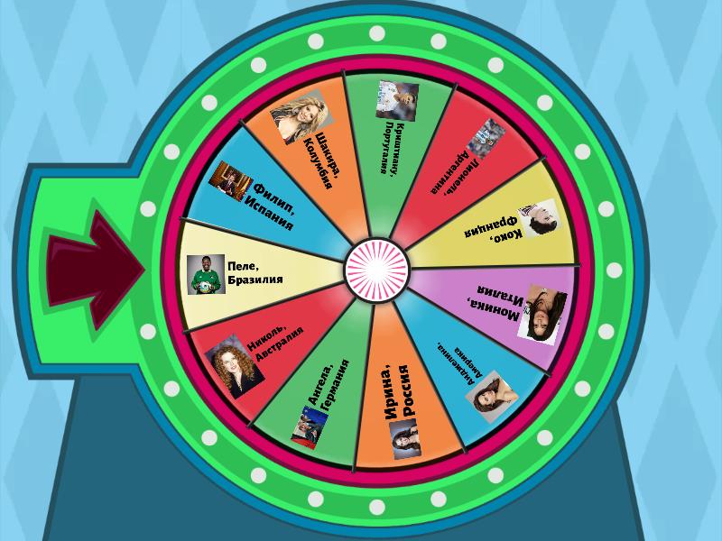 Филип, Испания, Шакира, Колумбия, Криштиану, Португалия, Лионель, Аргентина, Коко, Франция, Моника, Италия, Анджелина, Америка, Ирина, Россия, Ангела, Германия, Николь, Австралия, Пеле, Бразилия.
