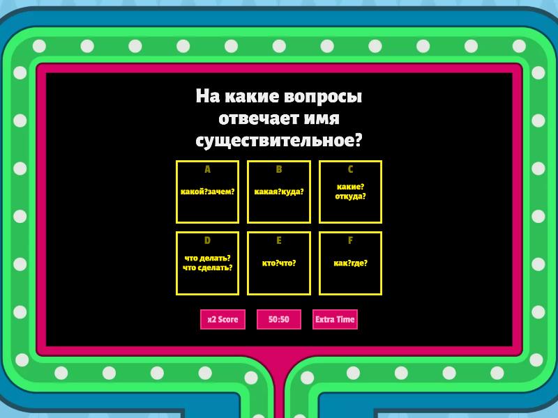 1) На какие вопросы отвечает имя существительное? a) какой?зачем? b) какая?куда? c) какие? откуда? d) что делать? что сделать? e) кто?что? f) как?где? 2) Имя существительное обозначает? a) предмет b) действие предмета c) признак предмета d) время предмета e) количество предмета f) говорит, но не называет предмет 3) Как подчёркивается имя существительное? a) двумя чертами b) одной чертой c) волнистой линией d) пунктирной линией e) точка с пунктиром f) берётся в круг 4) Сколько родов у имени существительного? a) 2 b) 1 c) 3 d) 4 e) 5 f) нет 5) Какой род у слов лес, рябина, небо? a) ср., ср.,ср.. b) муж.,ср.,муж.. c) ж.,муж., ср.. d) муж.,ж.,ср.. e) муж.,ср.,ж.. f) ж.,ср.,муж.. 6) По скольким числам может изменятся имя существительное? a) 2 b) 3 c) 4 d) 5 e) 6 f) нет 7) Определи число у слова ножницы? a) единственное b) множественное c) среднее d) маленькое e) числа нет f) большое 8) На какие вопросы отвечает имя прилагательное? a) какой?какая?какие? b) какой? где? какая? c) откуда?какая?кто? d) какой?какая?зачем? e) что?какая?откуда? f) который?какая?какие? 9) Что обозначает имя прилагательное? a) предмет b) действие предмета c) признак предмета d) время предмета e) количество предмета f) говорит, но не называет предмет 10) Как подчёркивается имя прилагательное? a) двумя чертами b) одной чертой c) волнистой линией d) пунктриром e) точка с пунктиром f) берётся в круг 11) Определи род у слов: прекрасная, тихий, зелёное? a) ж.,муж.,ср.. b) ж.,ж.,ж., c) ж.,ж.,ср.. d) муж.,ж.,ср.. e) ж.,муж.,муж.. f) ср.,муж.,ср.. 12) Глагол обозначает? a) предмет b) действие предмета c) признак предмета d) время предмета e) количество предмета f) говорит, но не называет 13) Как подчёркивается глагол? a) двумя чертами b) одной чертой c) волнистой линией d) пунктиром e) точка с пунктиром f) берётся в круг 14) Сколько времён у глагола? a) 3 b) 2 c) 1 d) 4 e) 5 f) 6 15) Определи время у слова спасёт? a) настоящее b) прошлое c) будущее d) вчерашнее e) завтрашнее f) нынешнее