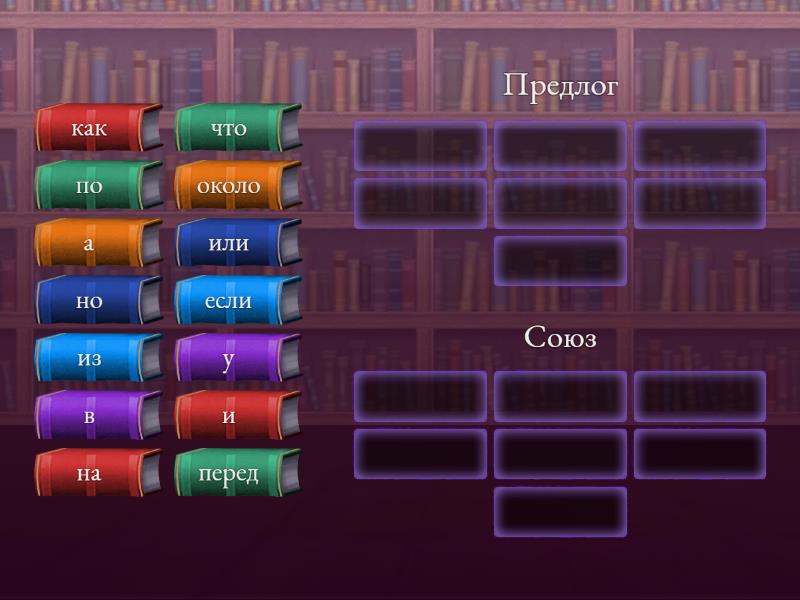 Предлог : на, из, у, в, около, перед, по, Союз: а, и, но, или, если, как, что,