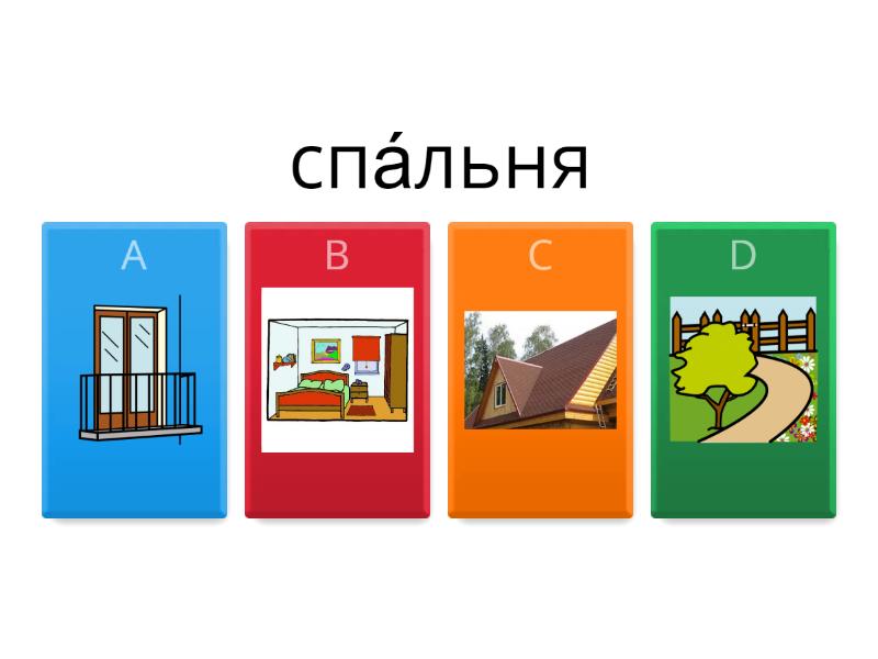 1) спа́льня a) b) c) d) 2) балко́н a) b) c) d) 3) гости́ная a) b) c) d) 4) гара́ж a) b) c) d) 5) ку́хня a) b) c) d) 6) сад a) b) c) d) 7) крыша a) b) c) d) 8) спальня a) b) c) d) 9) чердак a) b) c) d) 10) ва́нная a) b) c) d) 11) туале́т a) b) c) d) 12) подвал a) b) c) d)