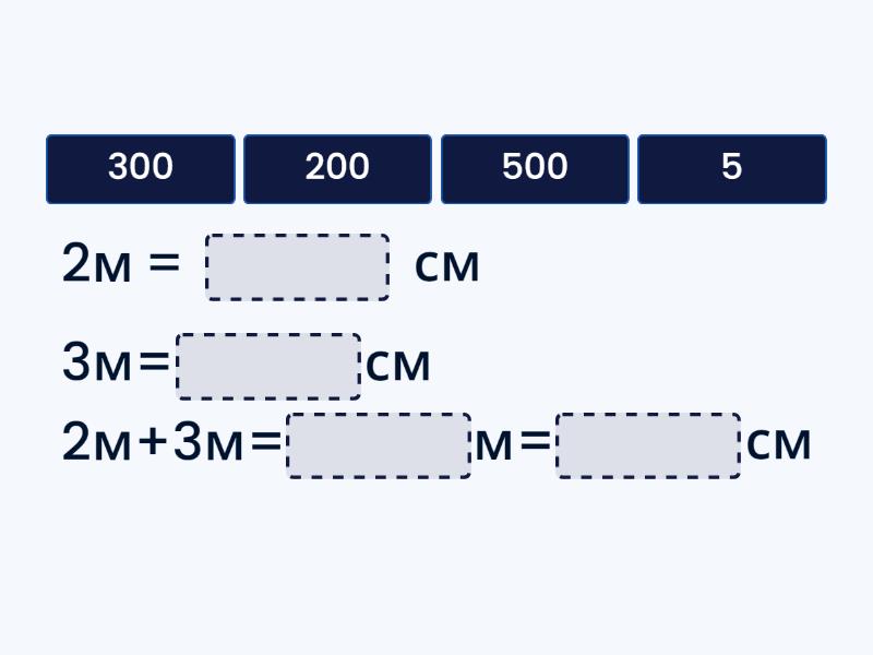 2м = ____ см 3м=____см 2м+3м=____м=____см 125см=____м____дм____см 384см=____м____дм____см 250см=____дм 1м = ____ см = ____ дм 106 см=____м ____см 10см=____дм=____мм 15см=1дм____см=____мм ____см=5м=50дм