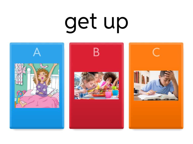 1) get up a) b) c) 2) have breakfast a) b) c) 3) go to work a) b) c) 4) have lunch a) b) c) 5) get home a) b) c) 6) do homework a) b) c) 7) have dinner a) b) c) 8) go to bed a) b) c) 9) leave home a) b) c) 10) watch TV a) b) c) 11) finish work a) b) c)