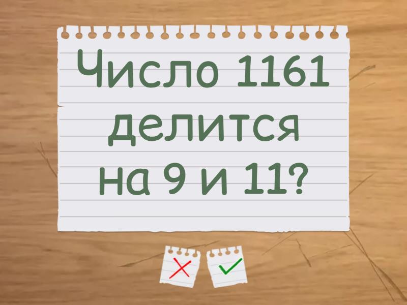 Число 8610 делится на 5 и 6? - да, Число 11025 делится на 5 и 9? - да, Число 1161 делится на 9 и 11? - нет, Число 4477 делится на 11? - да, Число 34375 делится на 11 и на 5? - да, Число 675 делится на 4 и 9 - нет, Число 19800 делится на 5,на 11 и на 8? - да,