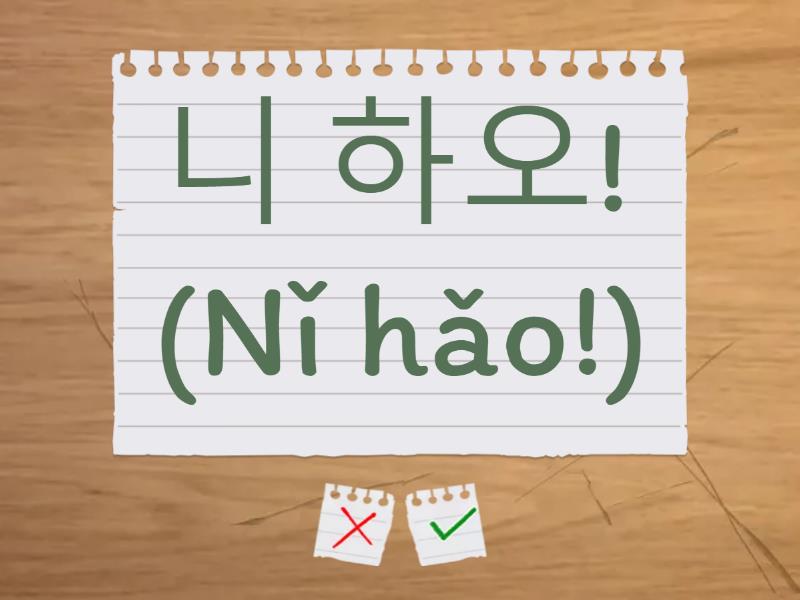 니 하오! (Nǐ hǎo!) - 안녕!, 짜이찌엔! (Zàijiàn!) - 잘 가!, 씨에시에! (Xièxie!) - 고마워요!, 부 커치! (Bú kèqi!) - 천만에요,, 뚜이부치! (Duìbuqǐ!) - 미안합니다., 메이 꽌시! (Méi guānixi!) - 괜찮아요., 쨔요! (Jiāyóu!) - 파이팅!, 니 쩐 빵! (Nǐ zhēn bàng!) - 너 정말 대단해!,